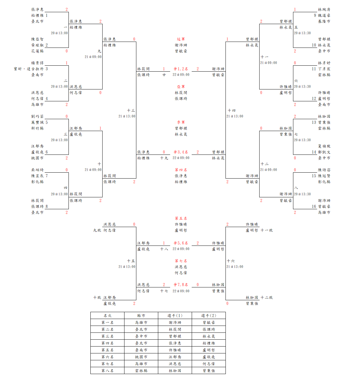 羽球混合組混合雙打賽(22日)