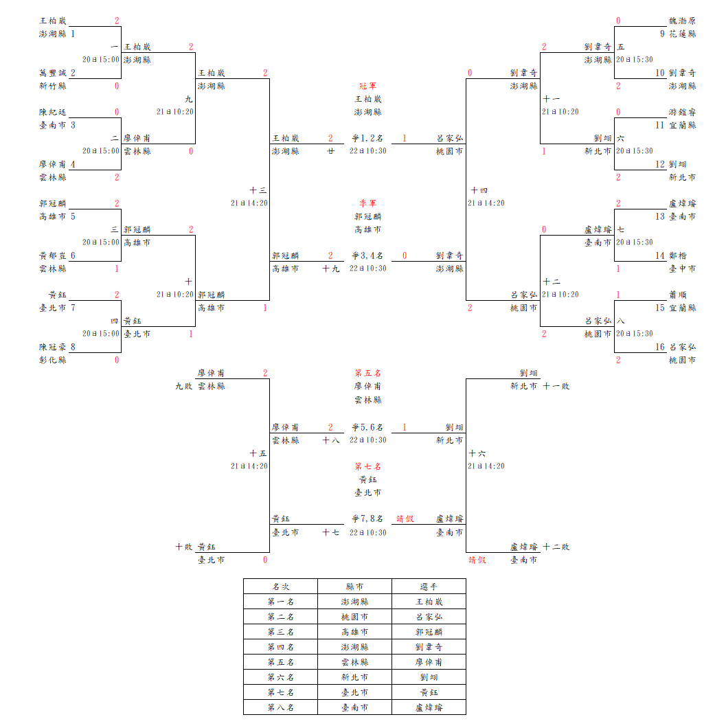 羽球男子組單打賽(22日)