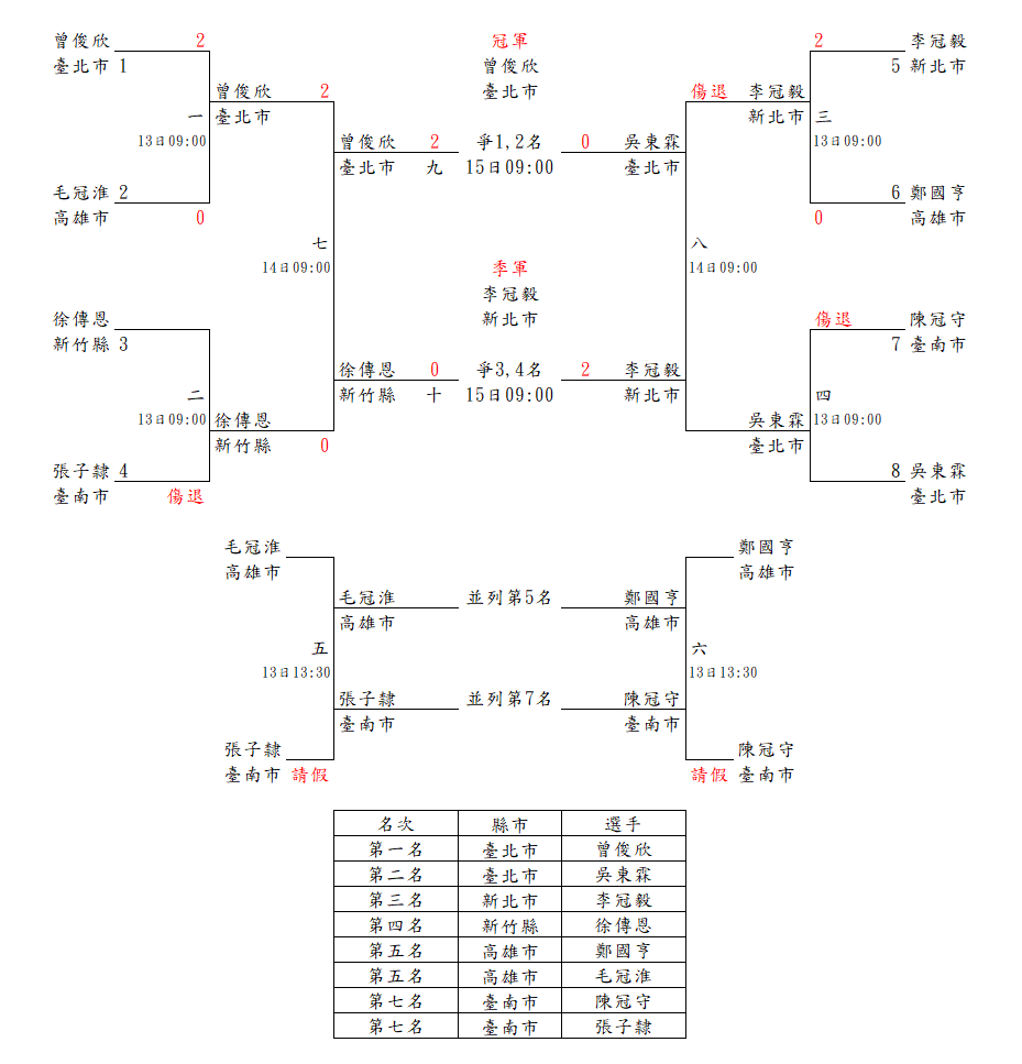 網球男子組單打賽(15日)