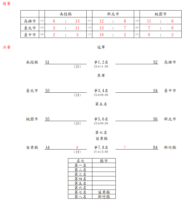 壘球女子組團體賽(22日)